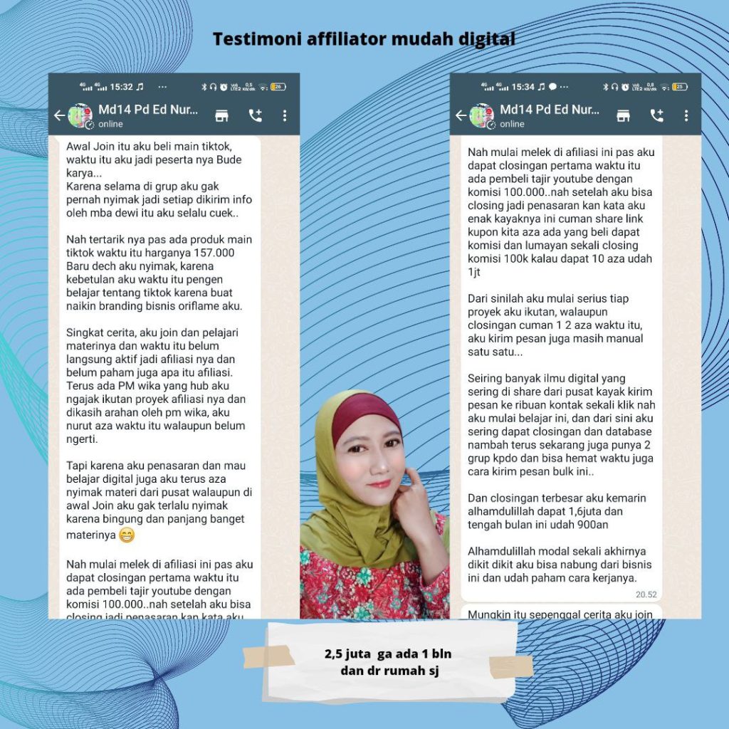Ga mau ribet tentang belajar design ,mau jualan saja tanpa modal ,bisa seperti mbak Lia dan mbak Nurhayati ini , jadi affiliator mudah digital dapat jutaan hingga puluhan juta